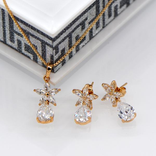 Luxury zircon Crystal Necklace Earrings Ring Jewelry Sets 18K Real Gold Plated Images |